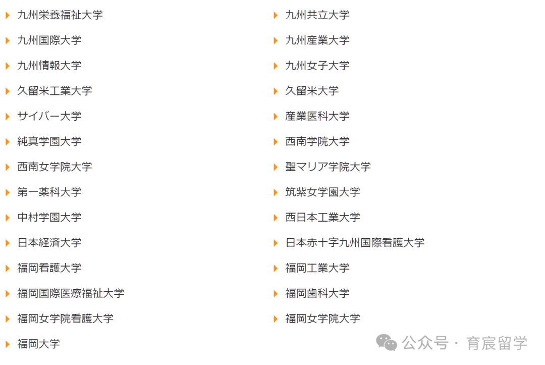 知名院校:九州工业大学、九州大学、福冈教育大学、北九州市立大学、九州齿科大学、福冈县立大学、福冈女子大学