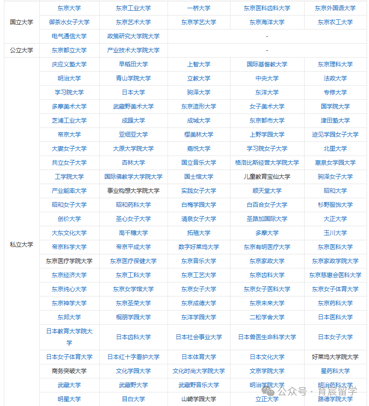 知名院校:东京大学、东京工业大学、早稻田大学、庆应义塾大学、东京医科齿科大学、御茶水女子大学、东京艺术大学、一桥大学、东京农工大学、上智大学、立教大学、中央大学、法政大学